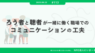 note #110 それって虐待?──聴覚障害支援の現場から考える noteを更新しました! 今回は、聴覚障害者施設における虐待防止の取り組みについての記事です。 他の施設とは異なる視点で虐待防止について考える難しさを書きました。 ぜひ下記リンクからご一読ください。 ... 2025.07.22 note